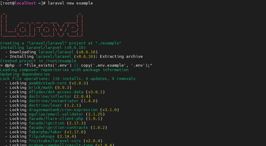 아래의 명령어를 입력하여 라라벨 프로젝트를 생성한다.