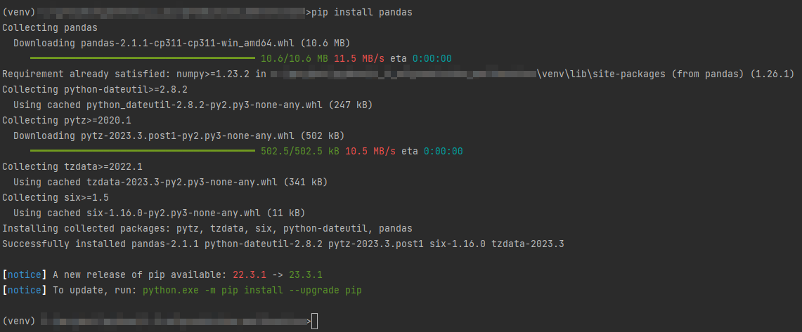 pip install pandas