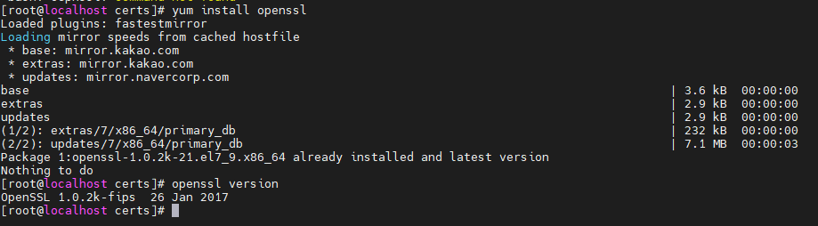아래의 명령어를 입력하여 OpenSSL을 설치한다.