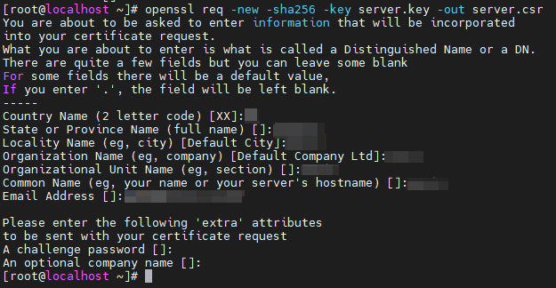 openssl req -new -sha256 -key server.key -out server.csr