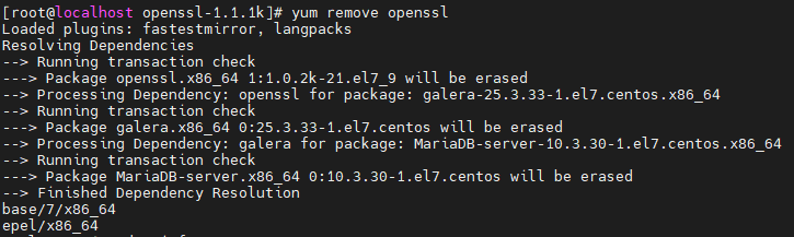 아래의 명령어를 입력하여 기존 Openssl 1.0.2k를 삭제한다.