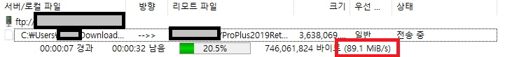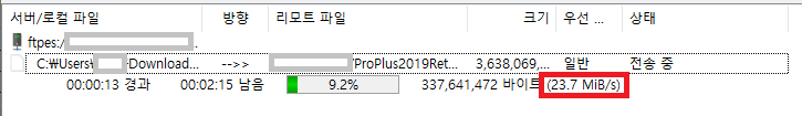 FTPS는 23.7 MiB/s로 24.85 MB/s가 나왔다.