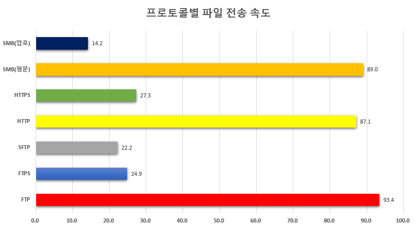 파일 전송 프로토콜별 전송 속도 결과