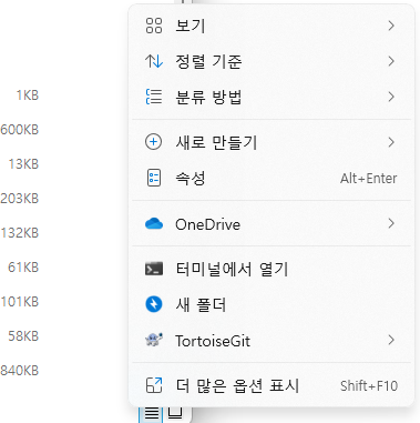 윈도우 11의 오른쪽 클릭은 좀 다른가?