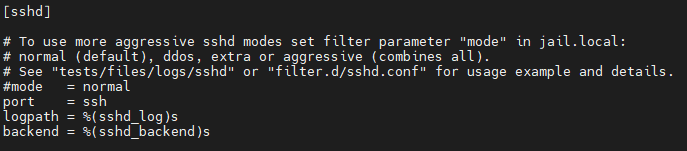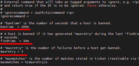 vi /etc/fail2ban/jail.conf