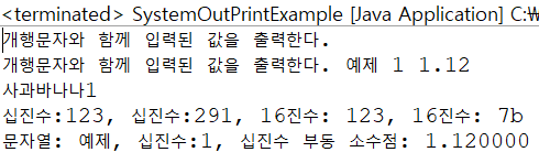 * 형식 목록: https://docs.oracle.com/javase/8/docs/api/java/util/Formatter.html#syntax