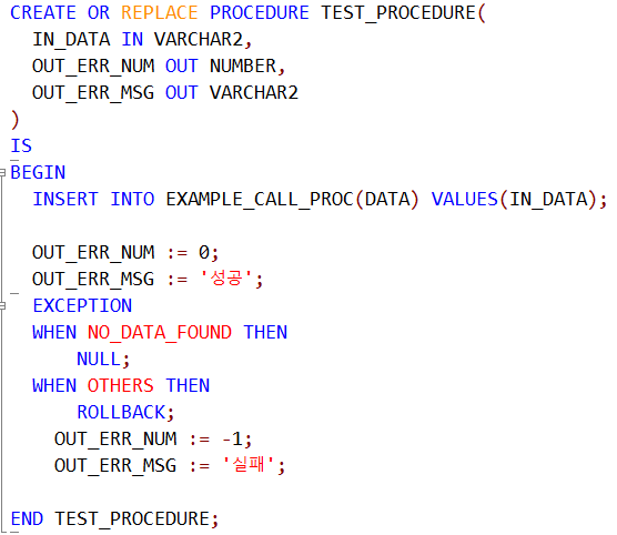 아래의 SQL(Structured Query Language)처럼 프로시저를 작성한다.