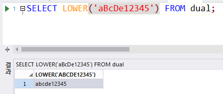 SELECT LOWER('aBcDe12345') FROM dual;