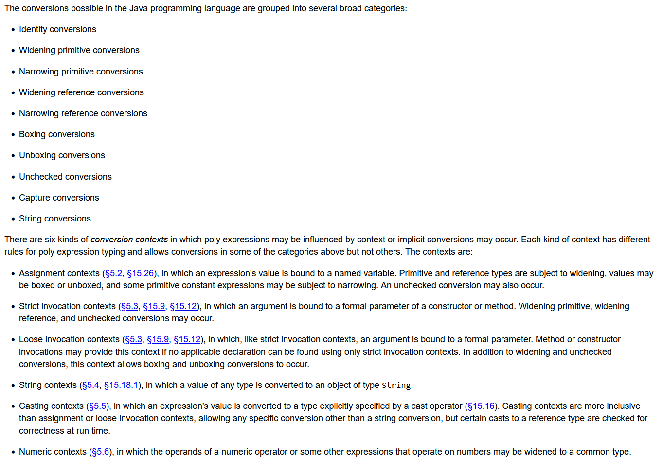- "Chapter 5. Conversions and Contexts", Java SE 17 Specification, 오라클. @원문보기