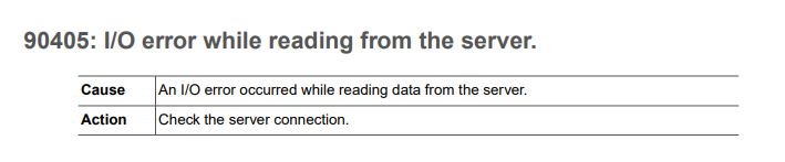 'JDBC-90405'의 경우 다양한 원인이 있을 수 있으므로 가장 의심이 되는 것부터 조치하는 것이 좋다. 세션과 메모리, 운영체제, 티베로 버전, 쿼리, 네트워크 설정, 네트워크 하드웨어 상태 등 다양한 원인으로 오류가 발생할 수 있다.