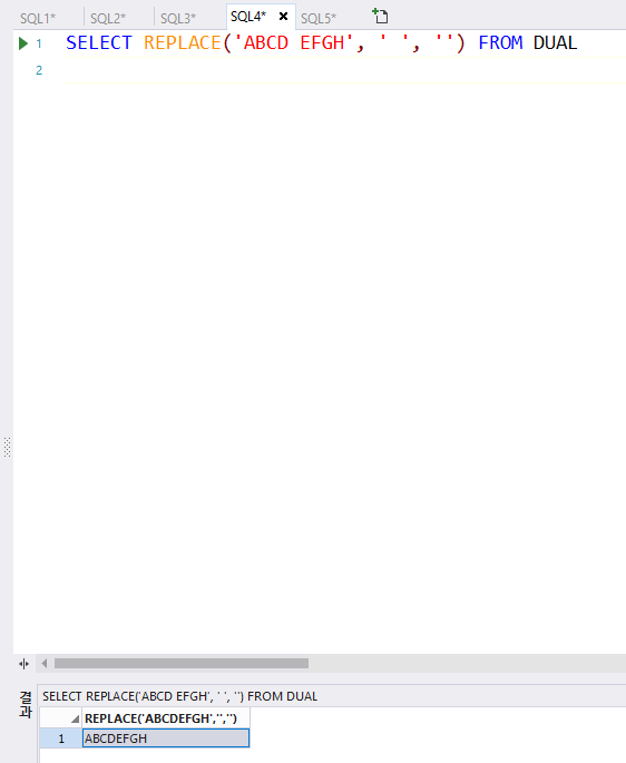 티베로에서 공백이나 하이픈 같은 문자를 다른 문자로 바꿔야 할 때 사용할 수 있는 함수로 'REPLACE'가 있다. 'REPLACE' 함수를 사용하는 방법은 아래와 같다.
