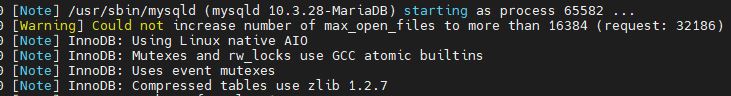 MariaDB 오류가 발생한 것 때문에 이것 저것 조치하고 있다보니 눈에 거슬리는 경고문이 있어서 조치를 했다. 아래와 같이 MariaDB 서비스를 시작할 때 "[Warning] Could not increase number of max_open_files to more than 16384 (request: 32186)"라고 경고문이 발생했었다.
