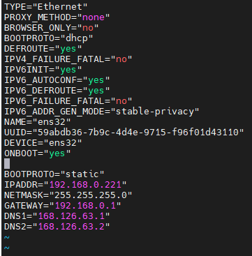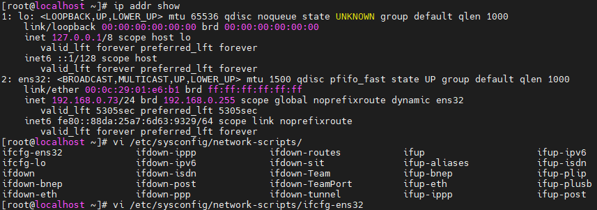 vi /etc/sysconfig/network-scripts/ifcfg-ens32