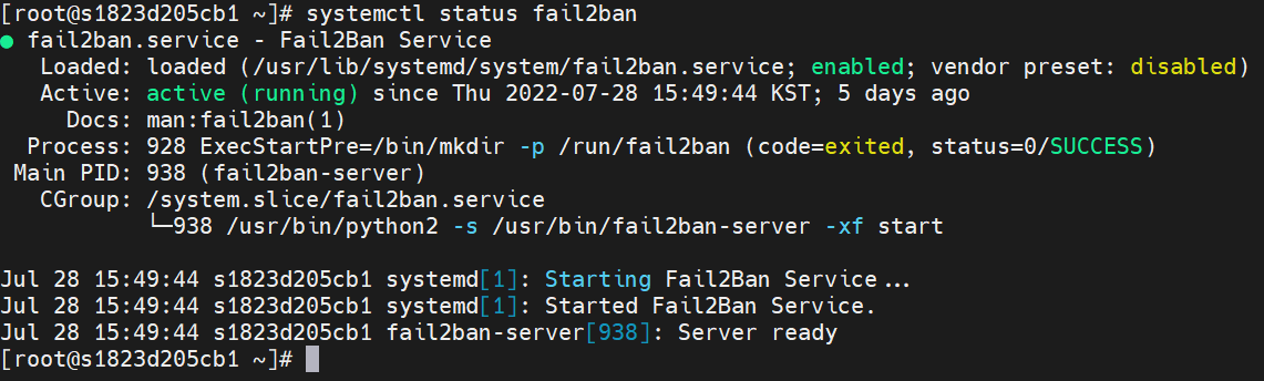 아래의 명령어로 Fail2Ban을 실행한다.
