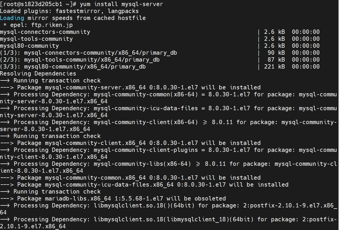 yum install https://dev.mysql.com/get/mysql80-community-release-el7-6.noarch.rpm