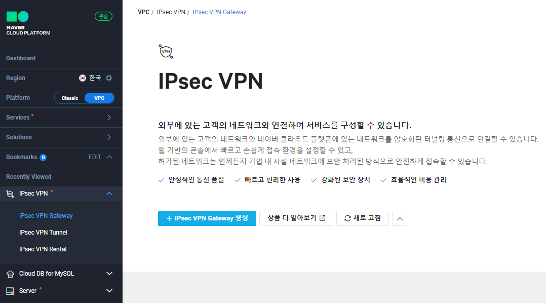 - IPSec VPN(Virtual Private Network)는 NCP(Naver Cloud Platform)의 VPN 서비스 중 하나이다.