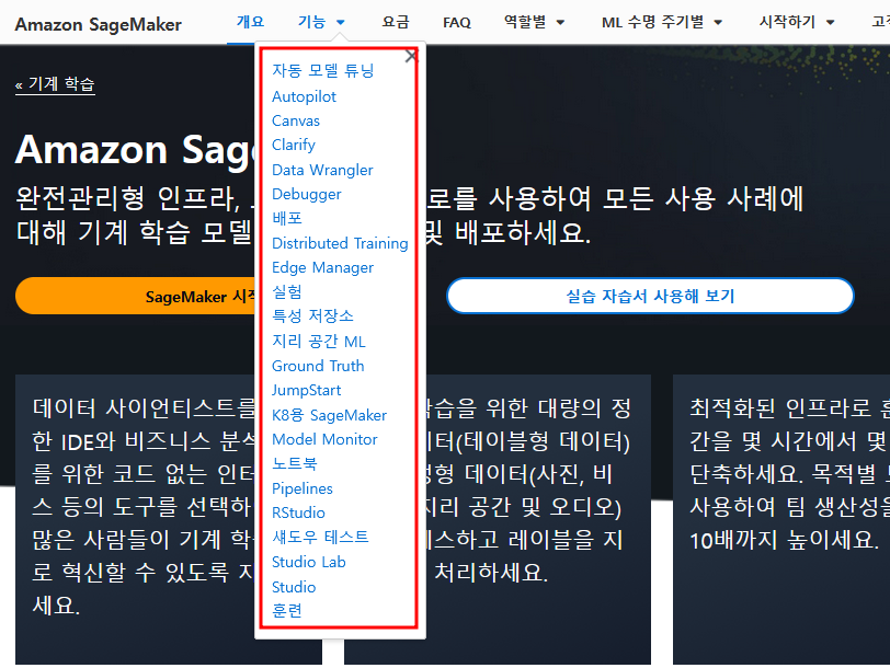 Amazon SageMaker에는 2개월 간 무료로 사용가능한 제품이 있어서 머신러닝 입문자가 많이 활용하는 플랫폼 중 하나이다.