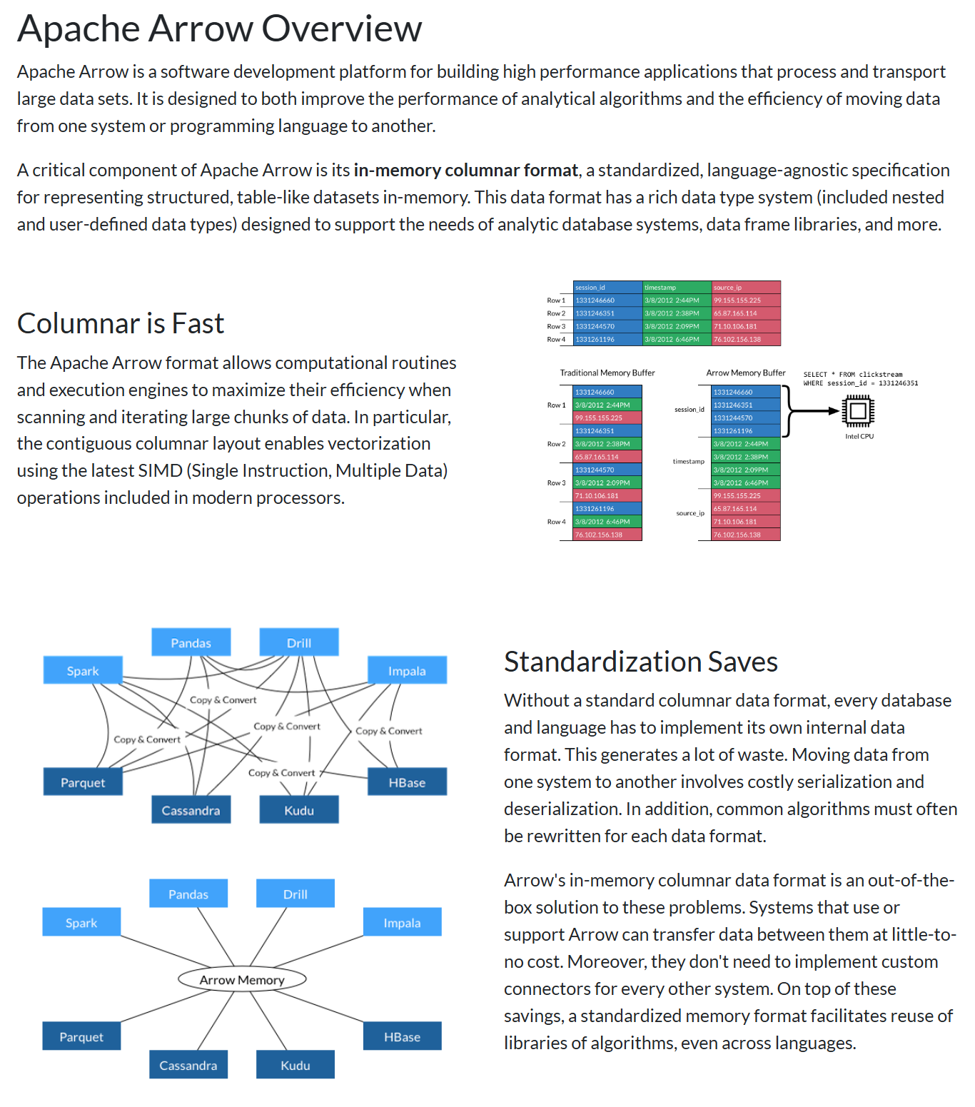 - "Apache Arrow Overview", 아파치 애로우 홈페이지. @원문보기