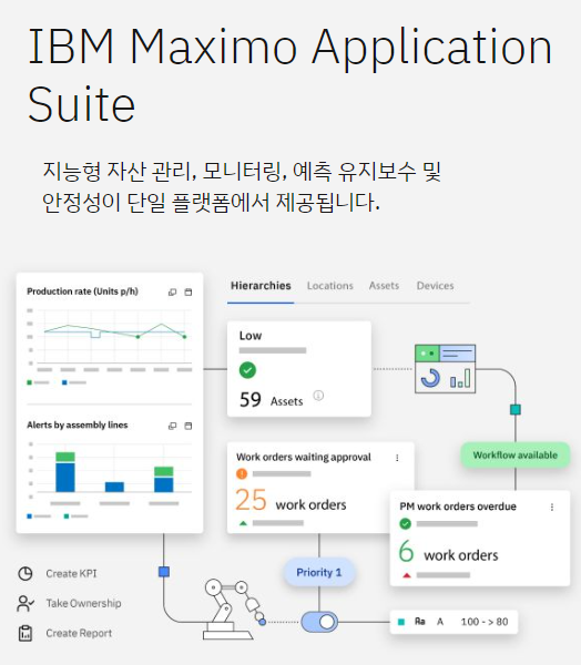 IBM Maximo는 설비 관리 솔루션이다. Maximo의 핵심 기능은 자산을 모니터링하고 장애를 예측하며 수명을 산정하는 예지보전하는 것이다.
