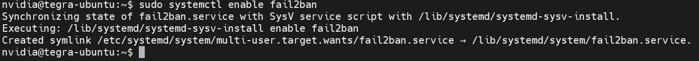 아래의 명령어를 입력하여 우분투가 부팅될 때 마다 자동으로 fail2ban 서비스가 실행될 수 있도록 설정한다.