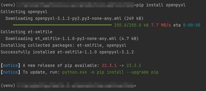 pip install openpyxl