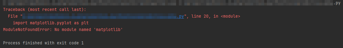 파이썬 프로그램 실행시 "No module named 'matplotlib'" 오류 메시지가 발생한다.