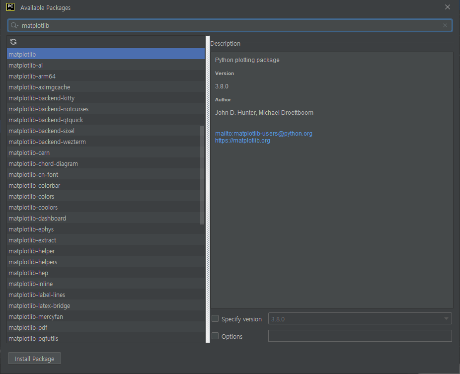 'matplotlib' 파이썬 모듈을 아래와 같이 설치한다. 아래의 명령어를 입력하면 'matplotlib' 모듈을 설치할 수 있다.