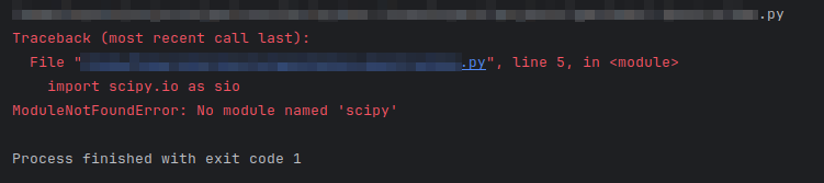 'scipy' 파이썬 모듈이 없어서 오류가 발생한다.