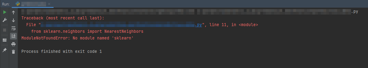 파이썬 프로그램 실행시 "No module named 'sklearn'" 메시지가 나타난다.