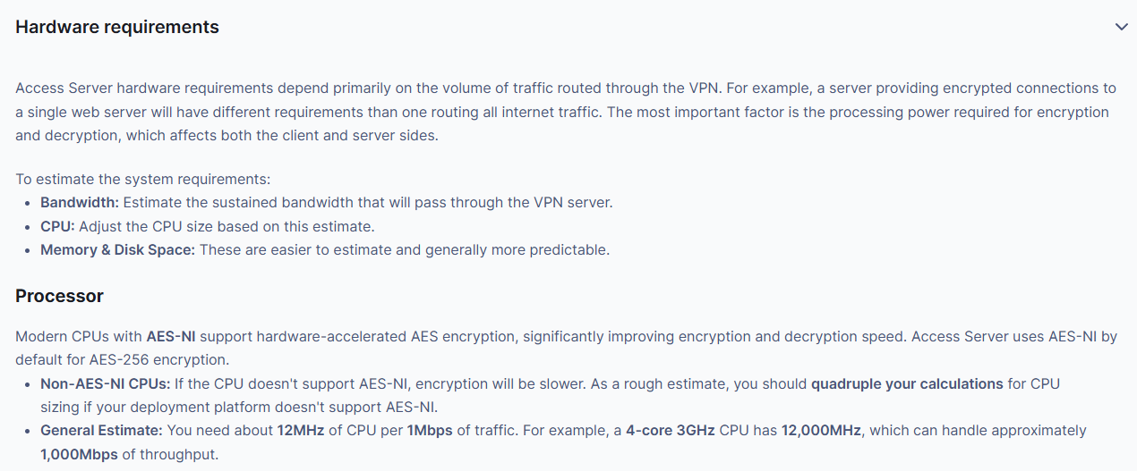 - "System Requirements for Access Server", OpenVPN Access Server Docs. @원문보기