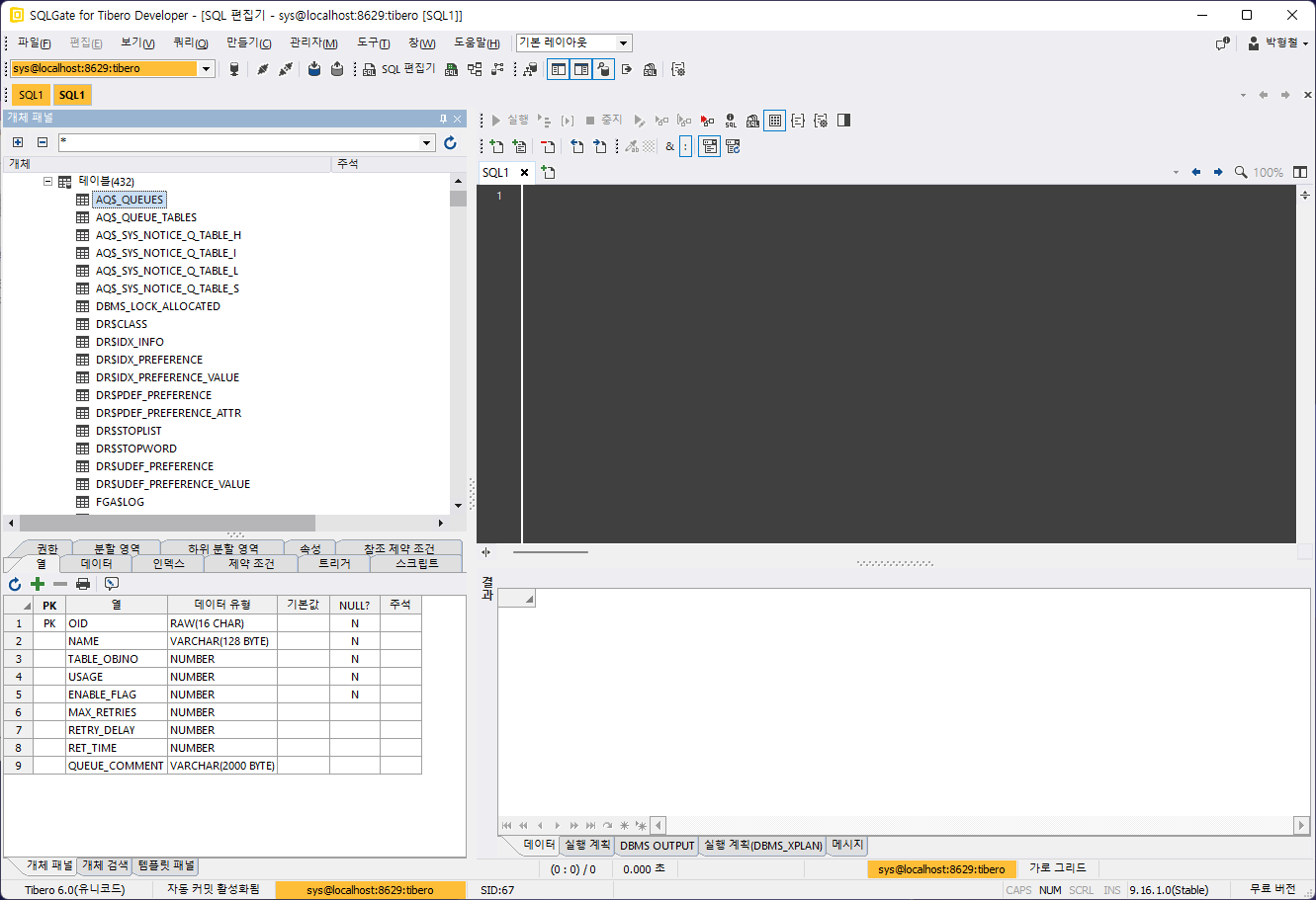 티베로를 GUI(Graphical User Interface)로 제어하는 도구가 여러가지 있겠지만 나는 그 중에서 최근에 SQLGate for Tibero를 몇달 써봤다. 무료 라이센스로 사용한거라 제약이 있었지만 꽤 사용하기 편했다.