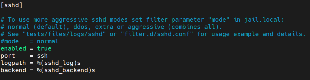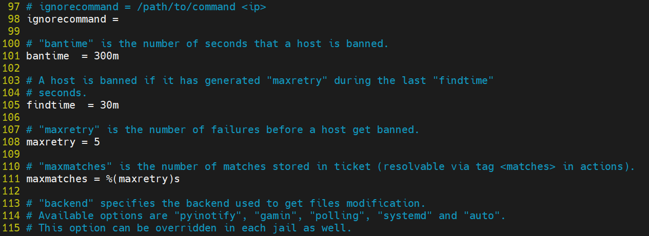 아래의 명령어를 입력하여 Fail2Ban 정책 파일을 수정한다.
