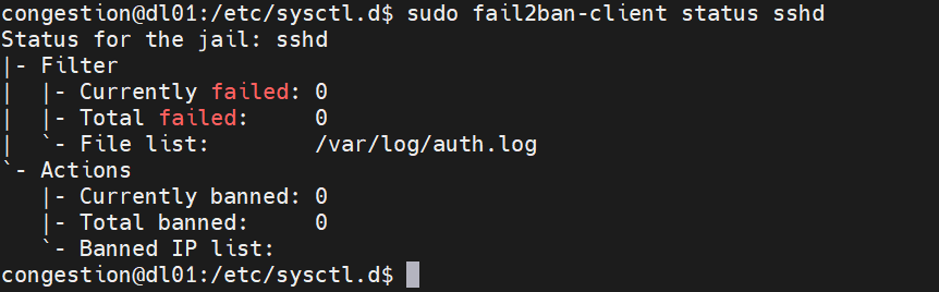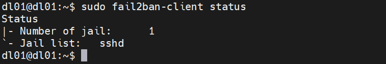 아래의 사진처럼 위의 명령을 실행한 결과가 나타난다면 Fail2Ban이 잘 설치된 것이다.