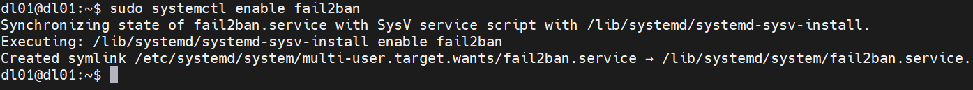 아래의 명령어를 입력하여 Fail2Ban 서비스를 운영체제가 부팅될 때 자동 실행되도록 설정한다.