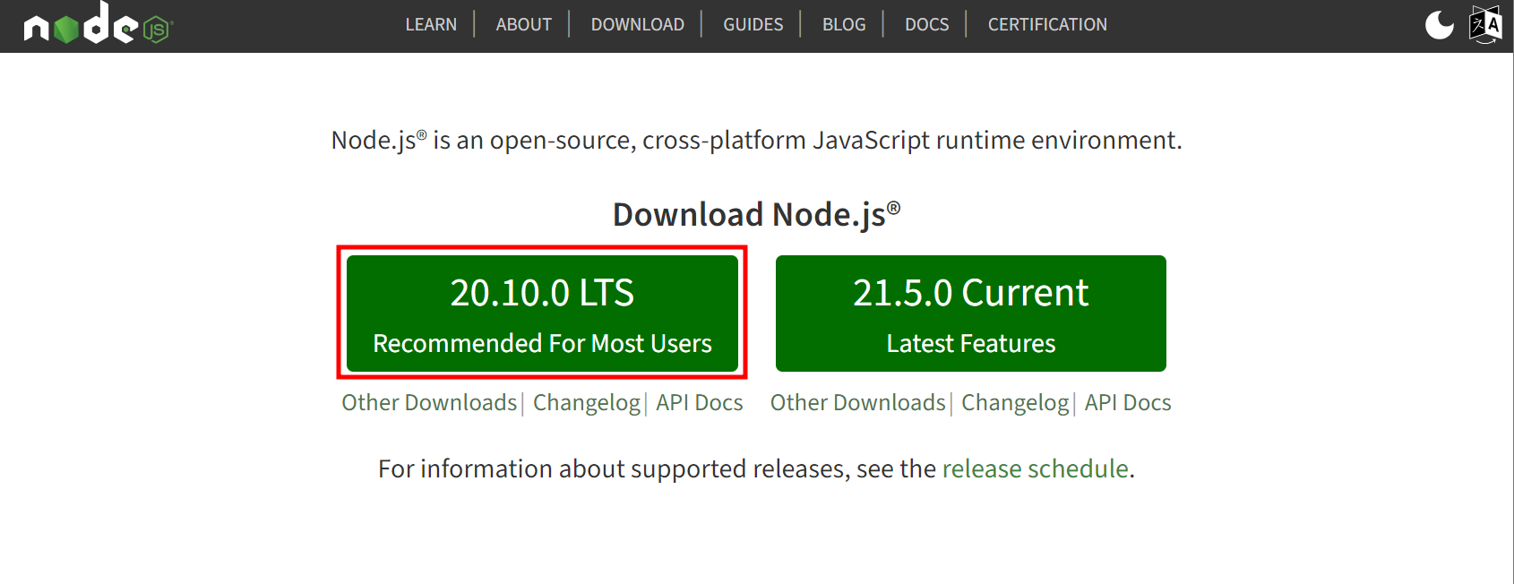 Vue CLI 활용을 위해 Node.js를 설치한다.