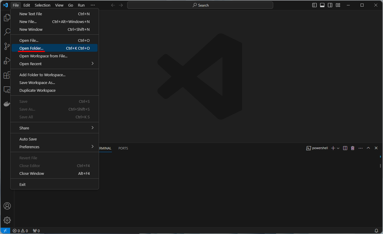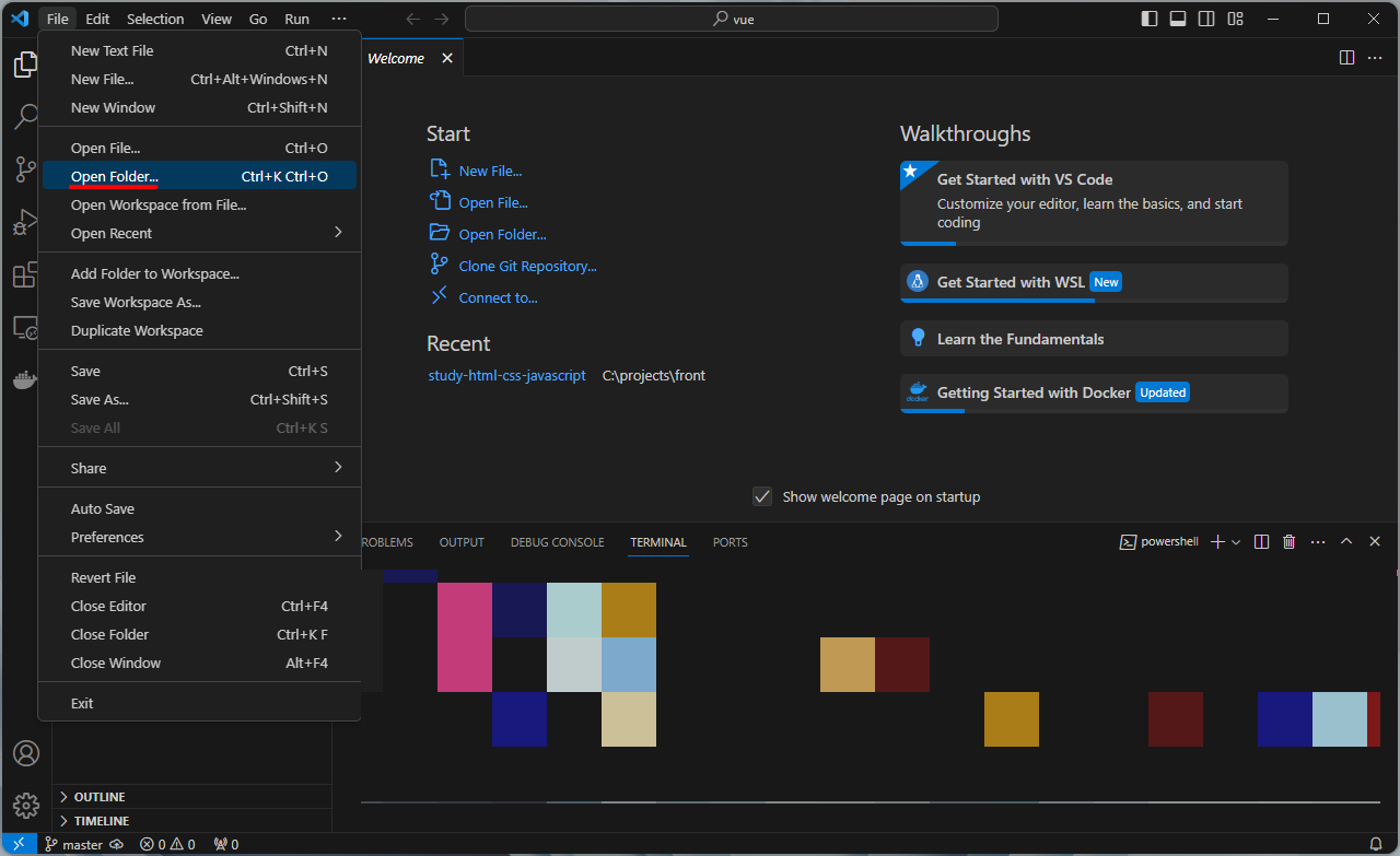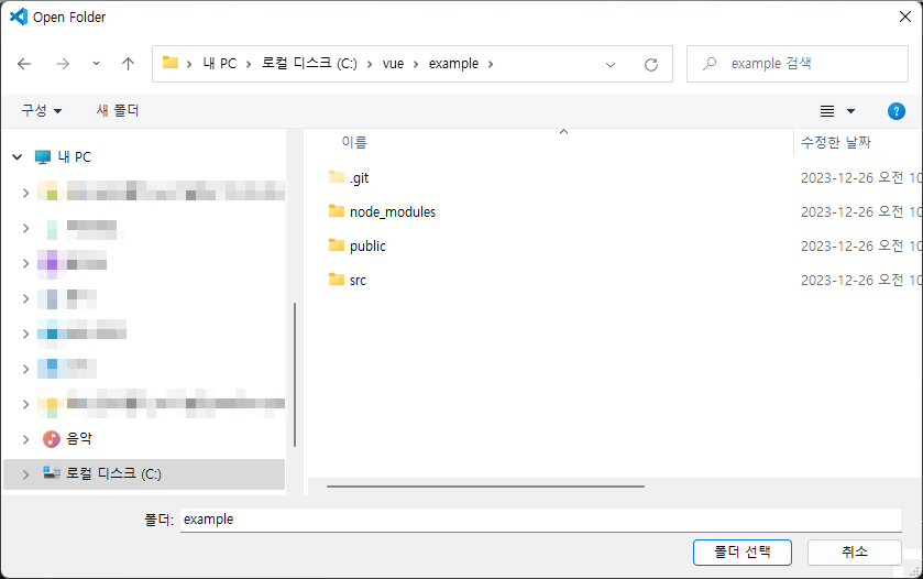 아래의 사진처럼 Vue.js 프로젝트를 생성할 폴더를 연다.