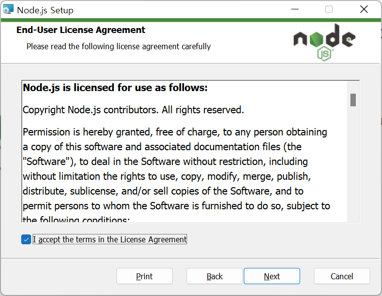 라이센스에 동의하고 'Next' 버튼을 클릭한다.