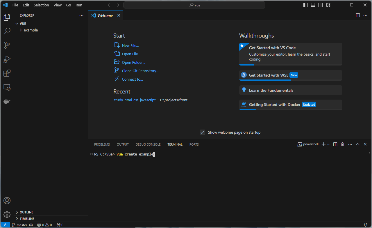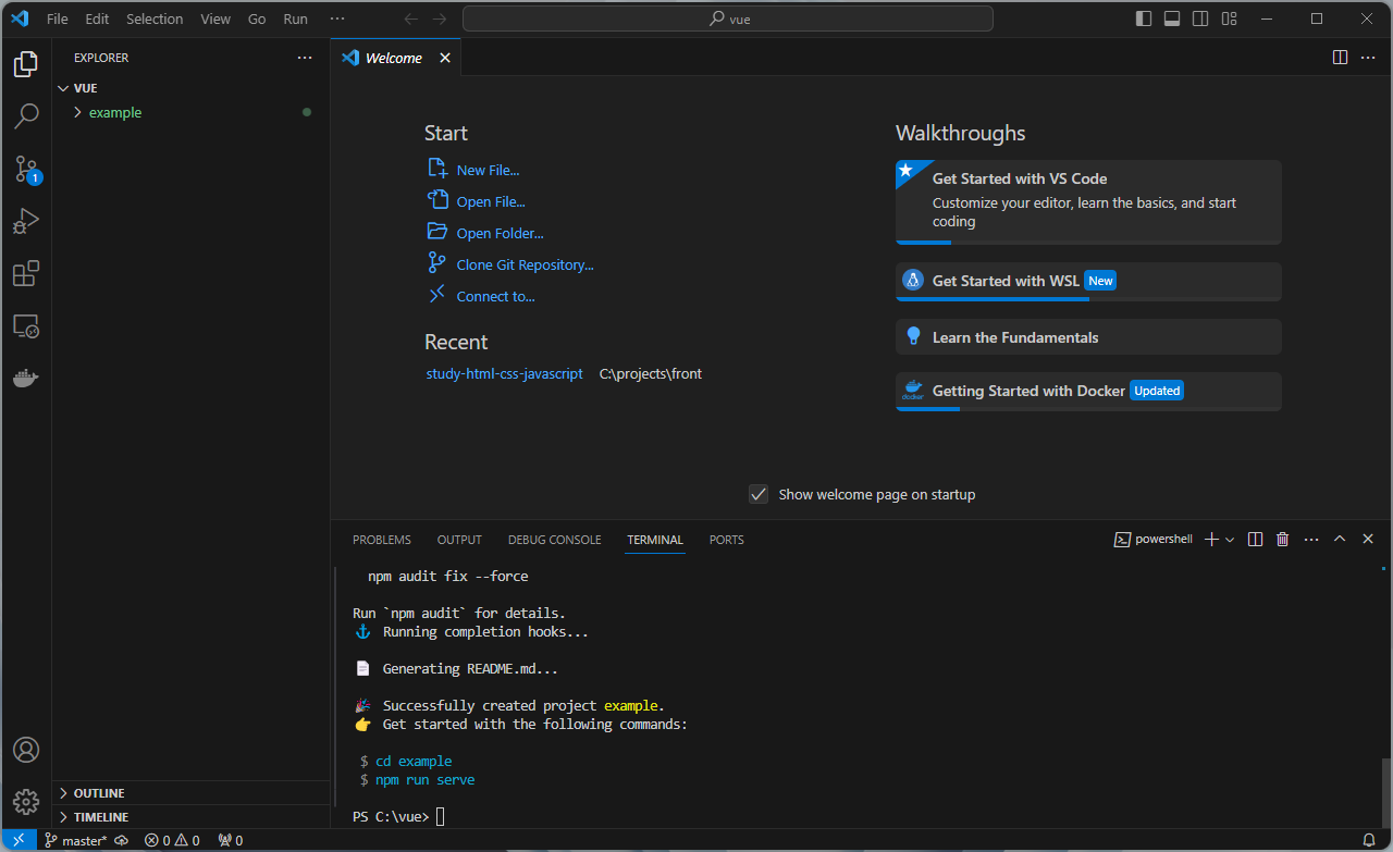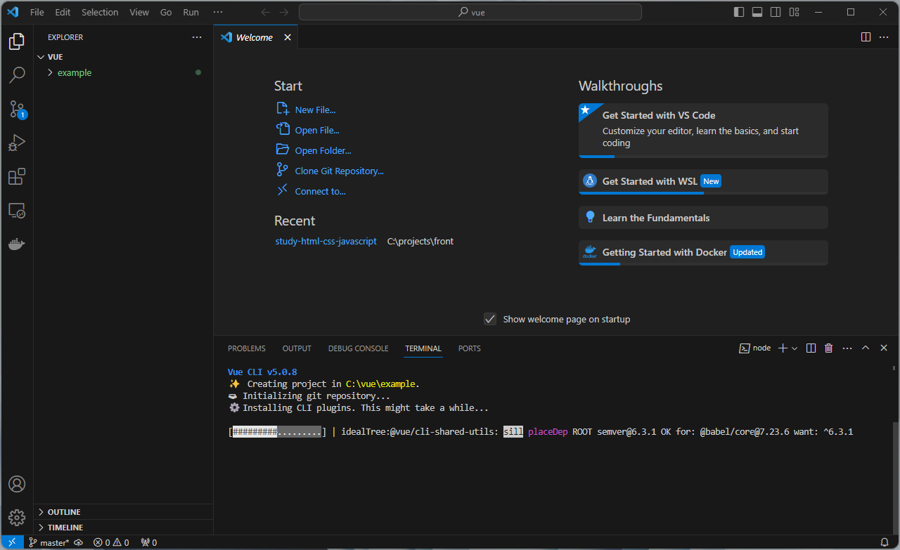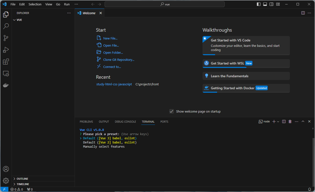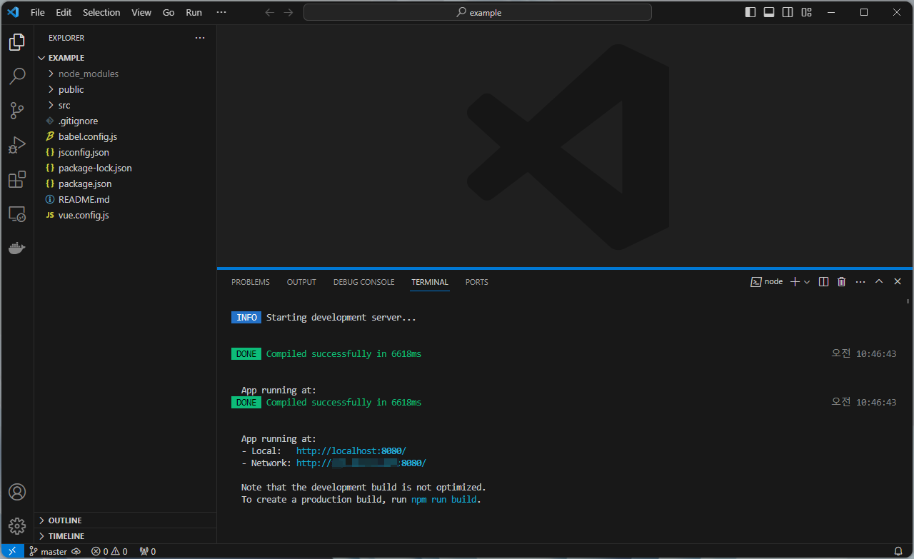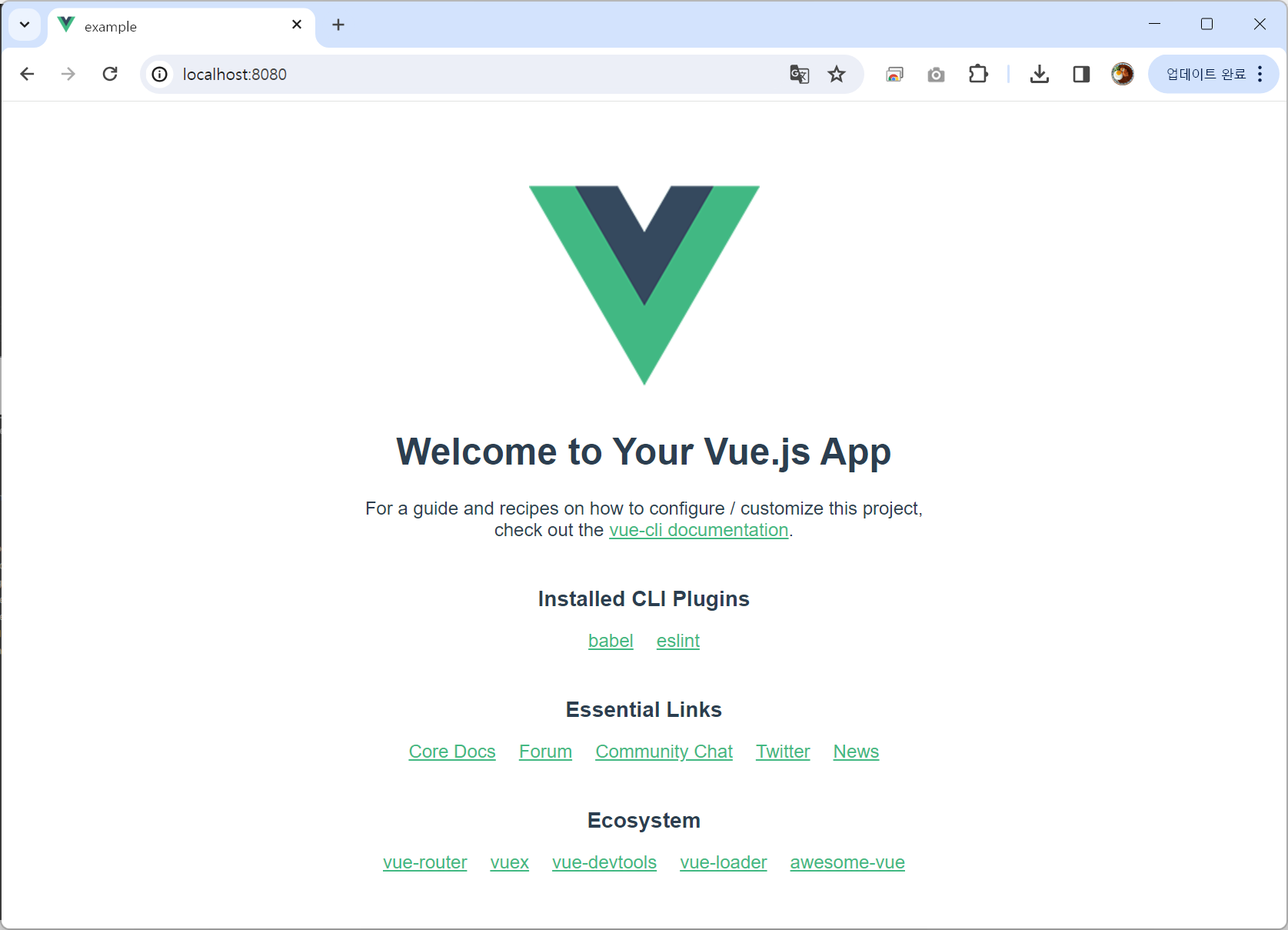 이렇게까지 정상적으로 수행되면 Visual Studio Code 기반 Vue.js 개발 환경이 잘 구축된 것이다.