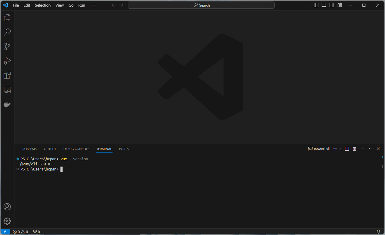 아래의 명령어를 입력하여 Vue CLI가 잘 설치되었는지 확인한다.