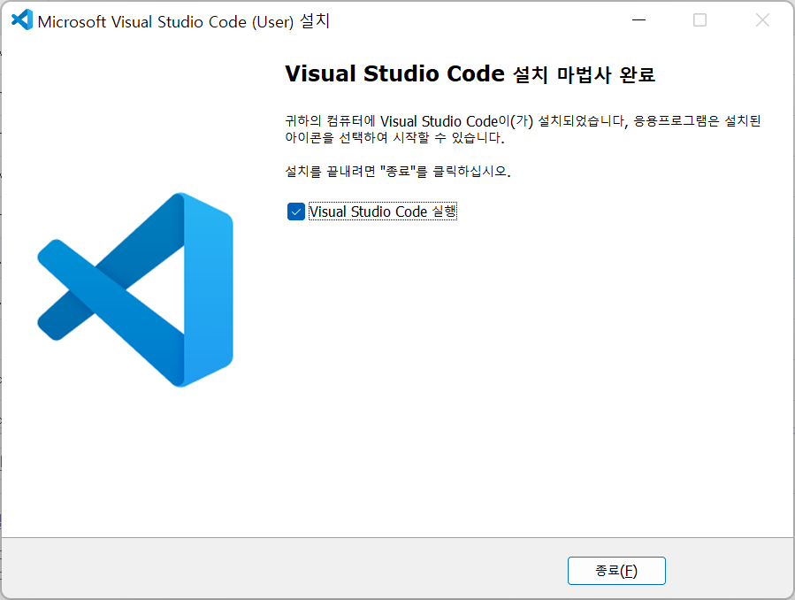 프로그램 설치가 정상적으로 완료되면 Visual Studio Code를 실행한다.
