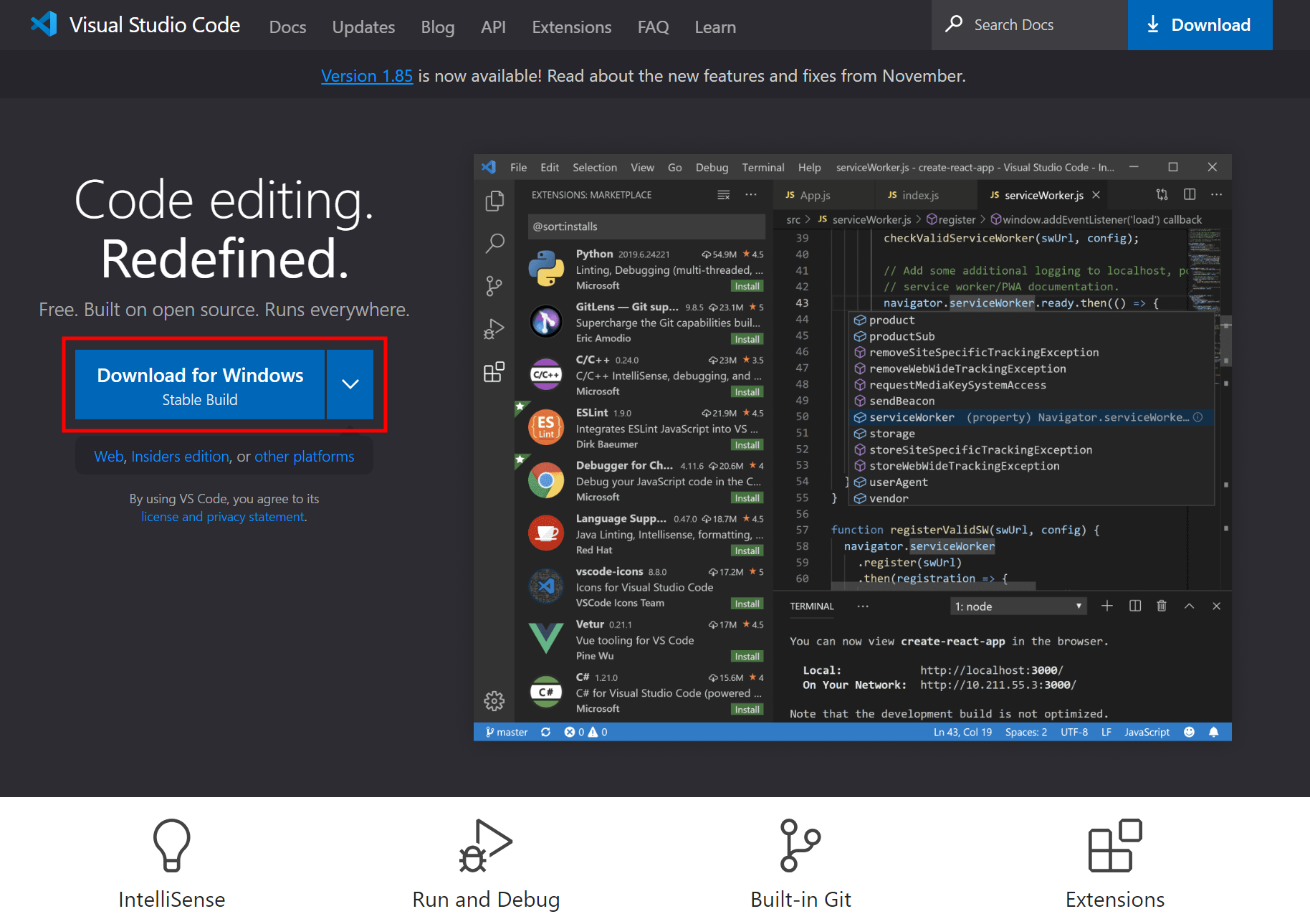 - Visual Studio Code 다운로드 주소: https://code.visualstudio.com/