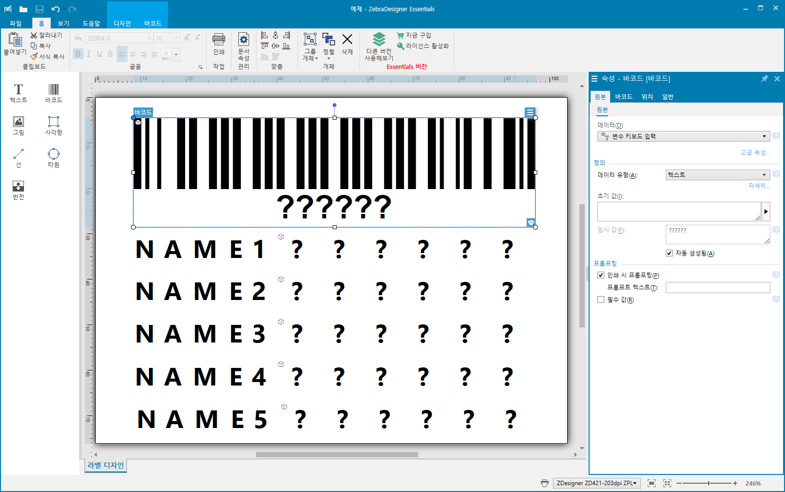 필자는 제브라 ZD421을 테스트하기 위해 제브라디자이너를 설치했다.