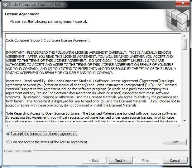 CCS(Code Composer Studio) v6로 개발환경을 구성하는 과정이다. Windows7 64비트 환경에서 수행하였고 앞으로의 글에서도 Windows7 64비트 환경과 CCS v6를 가정하고 쓴다. 다른 OS에서는 이 글 처럼 안 될 수도 있다는 점을 밝힌다.